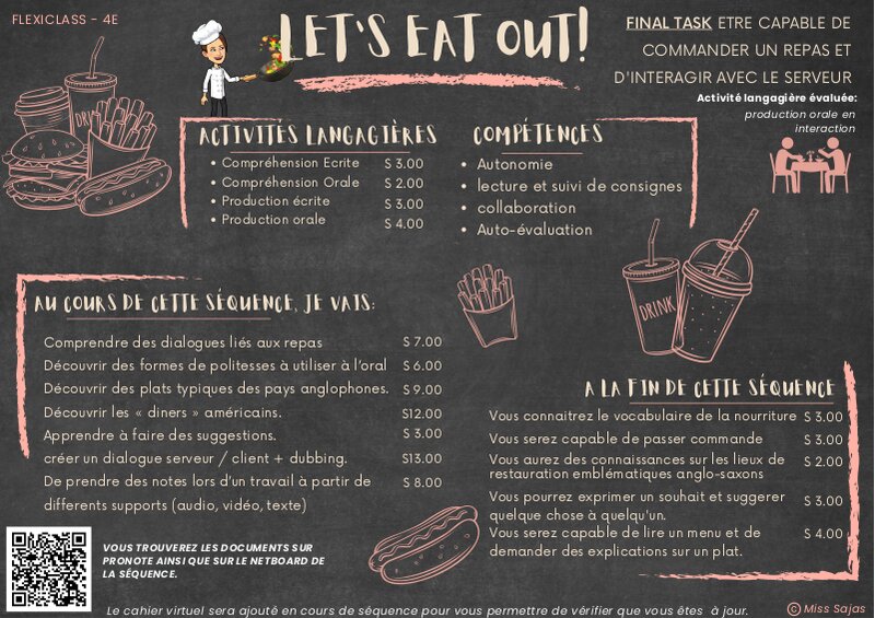 Bienvenue sur la page ressources de la séquence LET'S EAT OUT ! dans le cadre du travail en classe flexible en cours d'anglais.