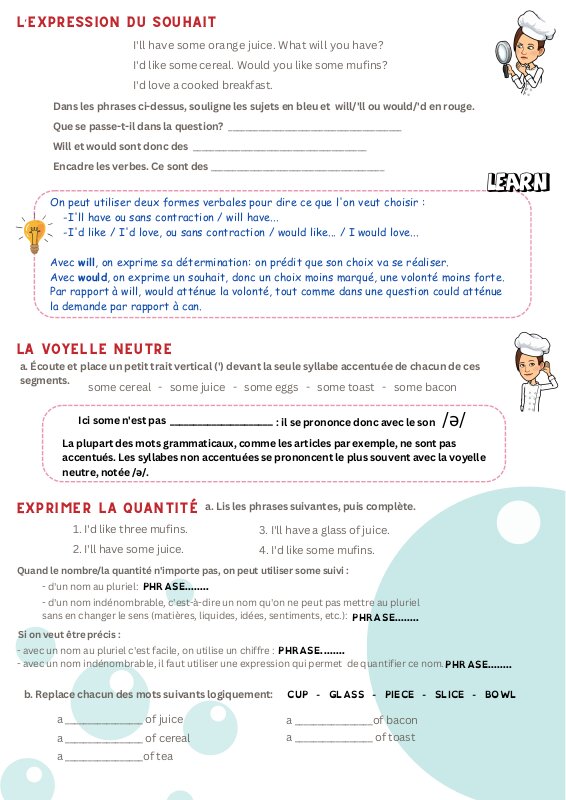 Bienvenue sur la page ressources de la séquence LET'S EAT OUT ! dans le cadre du travail en classe flexible en cours d'anglais.